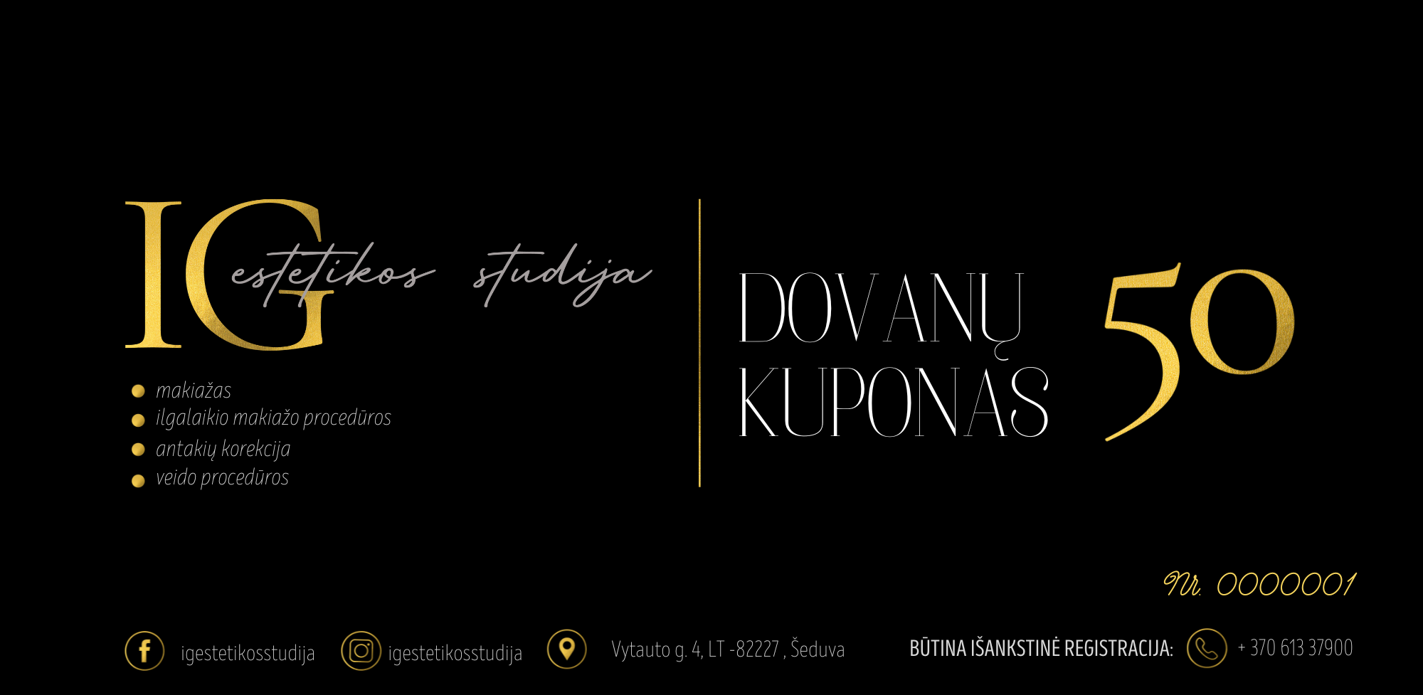 Grožio salone ,,IG estetikos studija” galite įsigyti dovanų kuponą, puikiai tiksiantį grožio procedūrų nusipelniusiai draugei, mamai ar kolegei.